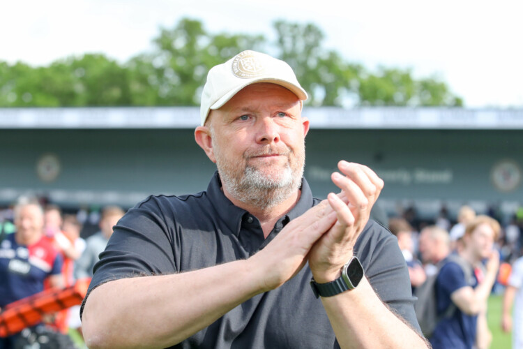 Bromley manager Andy Woodman after the League 2 match between Bromley and Cheltenham Town at Hayes Lane, Bromley, England on 3rd May 2025. Photo by Edmund Boyden.