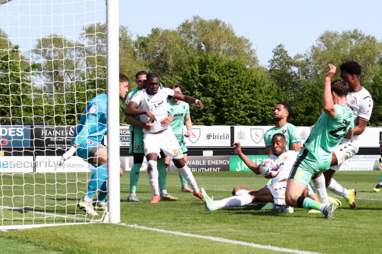 A tentative start from both teams was slowed even further as Ben Thompson and Tommy Backwell clashed heads near the centre circle. It was a grisly collision that left both players down for several minutes. Bromley restarted the game with their free kick, lifting a ball into the area towards Omar Sowunmi, who was tugged down by Sam Stubbs for a Bromley penalty. The outcome was never in doubt, as Michael Cheek smashed it home on the left side. Bromley doubled their advantage ahead of half-time thanks to a chaotic scramble to reach a Cameron Congreve corner, eventually being turned in by Nicke Kabamba.