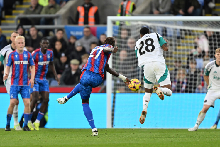 Daniel Munoz should have given the Eagles the lead in the 35th minute after a wonderful team move on the counter-attack when Ismaila Sarr pulled the ball to the back post for the Colombian defender to attack.
