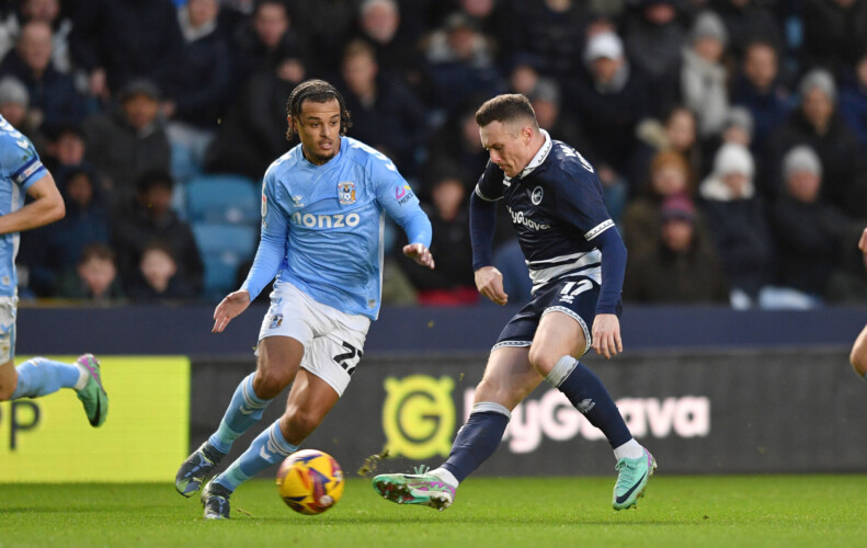 Maybe the match would have played out differently if Joe Bryan’s early goal – direct from a corner – had not been disallowed for a foul on Coventry goalkeeper Bradley Collins. Instead, you have to say that Coventry City created more chances once a game of football actually broke out in the second half. The Sky Blues finished with an xG (expected goals) of 1.53 to Millwall’s 0.48 – Lukas Jensen made a couple of crucial saves as well as defender Bobby Thomas hitting the left upright with a powerful header. The Lions did have late pressure as they threw on attacking players but failed to find any moment of quality.