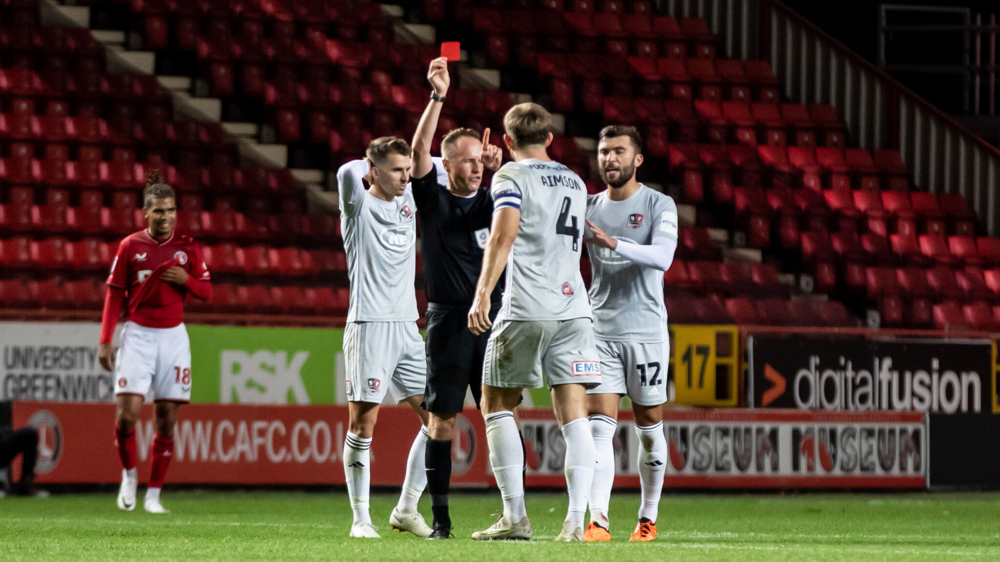 Exeter City manager Gary Caldwell has slammed referee David Rock’s decision to send off Will Aimson in last night’s 4-1 defeat to Charlton Athletic.