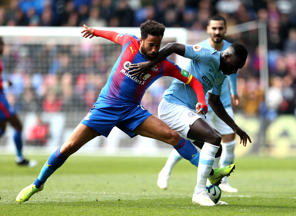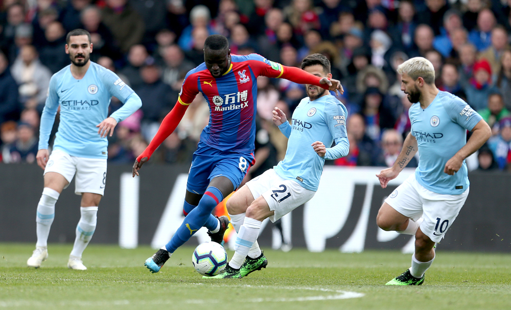 Wilfried Zaha lost the ball on the halfway line and Kevin de Bruyne sprung away. The Belgian fed substitute Gabriel Jesus, who evaded Milivojevic’s challenge, glanced across goal to deceive Vicente Guaita before tucking the ball into the opposite corner.