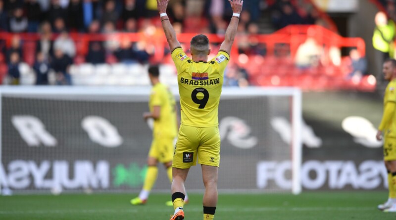 Bradshaw scored the opening goal just before half-time. His first effort was blocked but he got back up and fired the away side ahead, breaking his duck for the campaign.