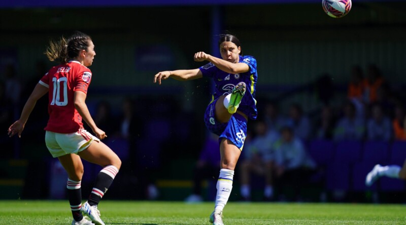 Sam Kerr scored a sensational goal to put Chelsea 4-2 up against Manchester  United  secure three points and give the west Londoners the WSL title in the most dramatic of occasions for the third time in a row.