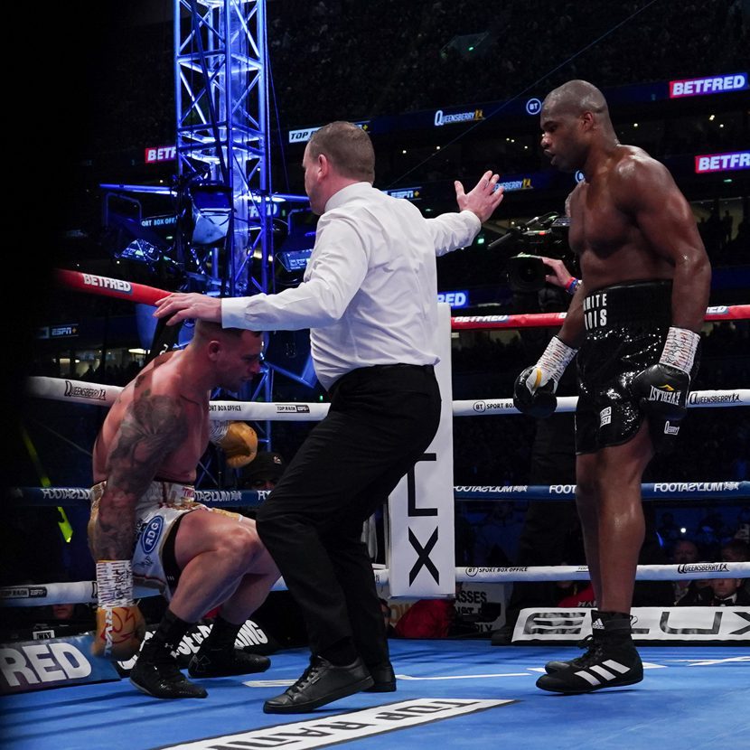 Dubois’ camp blamed those extra trips to the canvas on him suffering damage to his right knee from the first knockdown. It definitely looked as if he had a balance issue after that when he tried to attack.