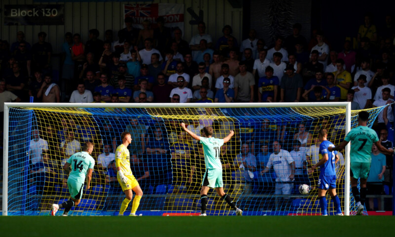The visitors took the lead when Barry jinked his way down the right-hand side and drilled a low cross along the face of goal for Will Collar to smash a shot into the roof of Bass’ net.