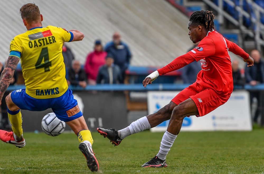 Dipo Akinyemi tried to work space for himself but the Hawks defence did not allow him room and he blasted his shot high and wide. Welling’s leading scorer then headed on a long ball to Harvey Bradbury and from his pull back, Joe Oastler lashed over his own bar.