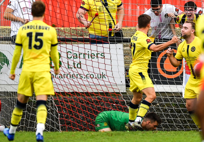 Farnborough levelled in the seventh minute of stoppage time. Pendlebury didn’t appear to strike his free-kick cleanly but it found its way through the Welling wall and into the bottom corner.