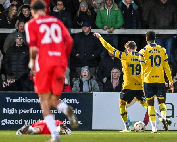 Di Trolio came close to equalising when heading over after Dave Winfield had nodded Daniel Martin’s corner into his path but it was the Gulls who scored again with one minute remaining. Di Trolio slipped as he attempted to head back to Berry and Cooke took full advantage when giving the exposed goalkeeper no chance.