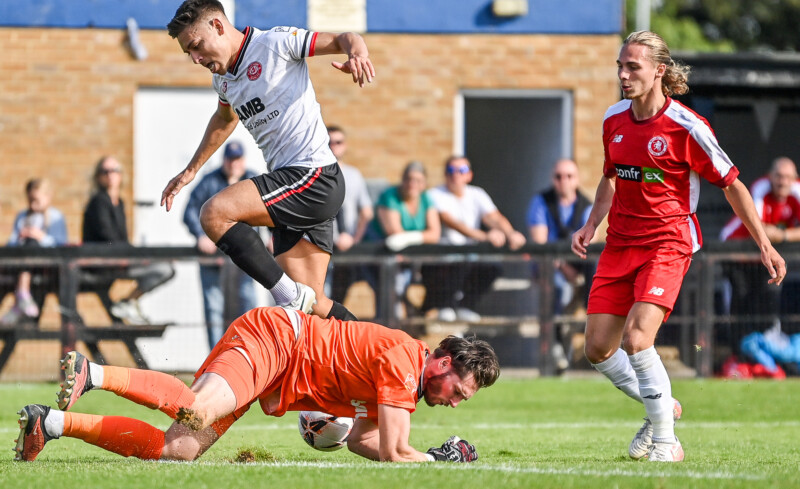 Although Charlie Pegrum had a low shot saved and Burchell volleyed narrowly wide from the edge of the area, the Chats looked dangerous whenever they went down the sides and another low Yila cross was knocked back to Jordy Robins by Jack Evans and Rhys Lovett had to get down sharply to make the save.