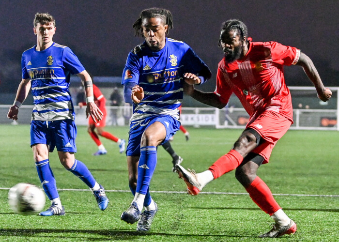 Both teams’ goalkeepers made comfortable early saves, Aveley’s Jonathan North holding Dominic Odusanya’s shot, and Reice Charles-Cook catching a header from Alex Hernandez.
