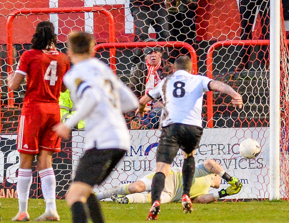 Korrey Henry’s header came back off the bar, but with a draw being no good to either side, Quinton went for broke by bringing on strikers Philip Roberts and Bradley Rolt to join Henry up front and Welling grabbed the winner with four minutes remaining. Rolt found Henry and his low angled cross was met by Wright at the far post and he forced it home before wheeling away in celebration.