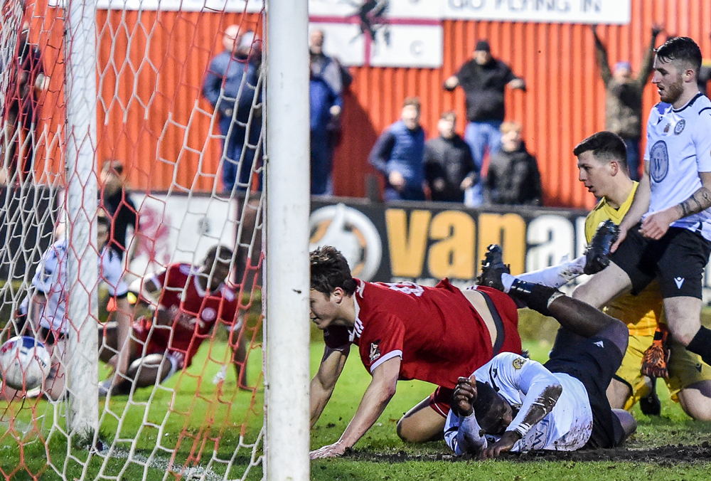 Manager Bradley Quinton had sent two strikers on after the visitors had equalised with under fifteen minutes remaining but even though there were three centre forwards on the field, it was holding midfield player Wright who was in the right place at the right time to finish from inside the six yard box.