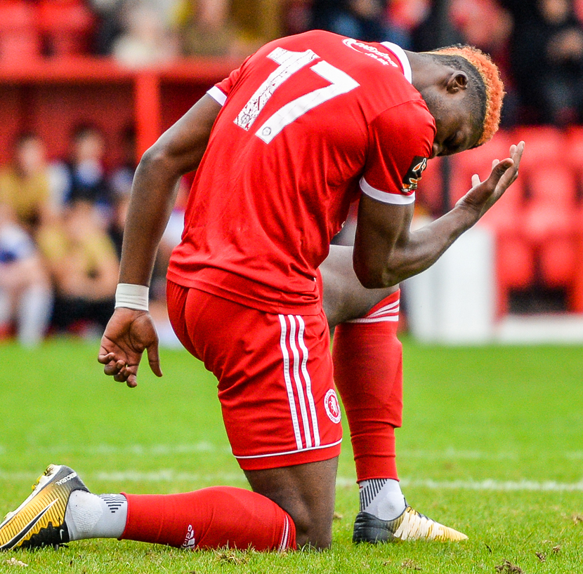 Within a minute of the restart their hopes were left in tatters when Cross flew in on Danny Waldren with studs raised and the referee wasted no time in sending him off for the disgraceful challenge.