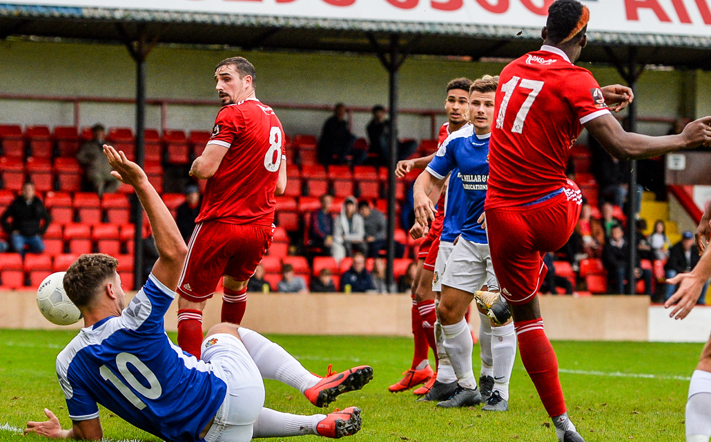 Jebb met an Anthony Cook cross with a first time volley but Oak made a good block before Goldberg somehow fired over an empty net after Oyinsan did well to head back Cosgrave’s cross.
