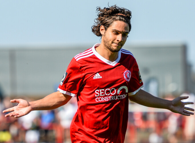 Bradley Goldberg celebrates scoring the opening goal