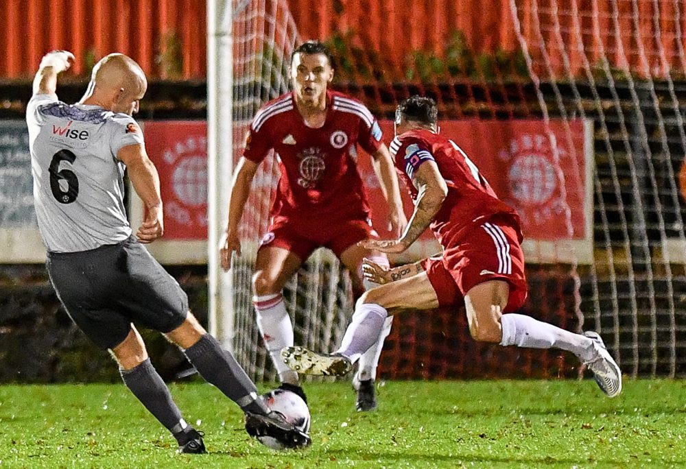 George Wells had an early opportunity for the visitors when his shot was blocked wide before Stefan Payne had an opening for Welling. A defender lost his footing to allow the Wings striker a run on goal and he forced a good low save out of Rhys Forster at the expense of a corner.