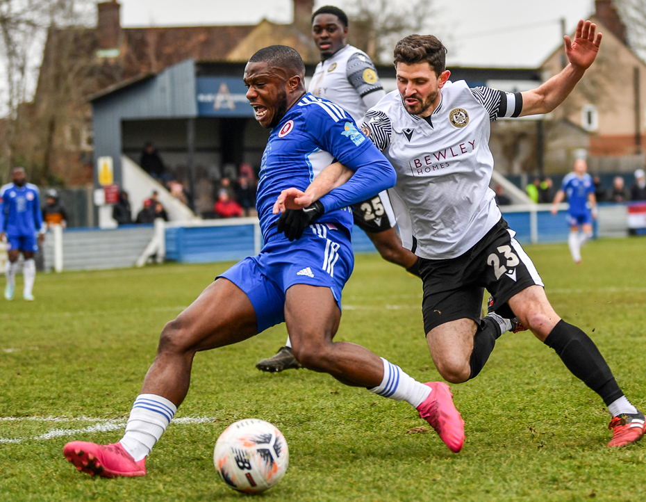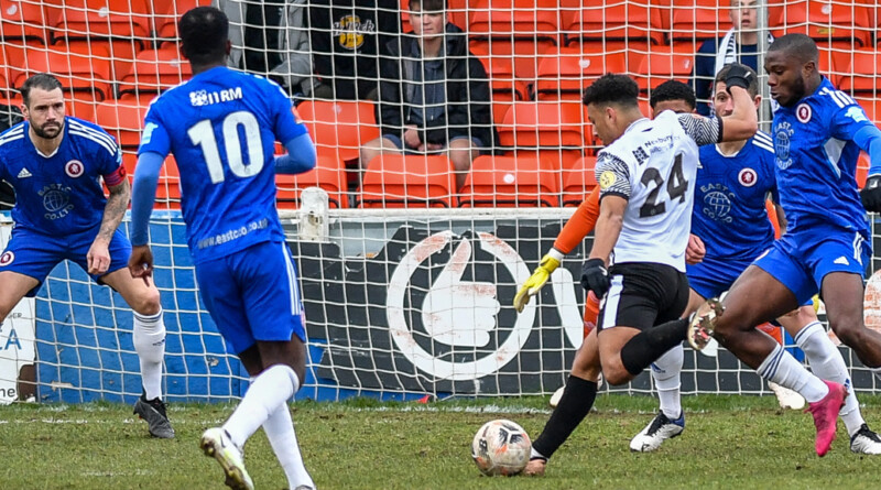 Substitute Anthony Papadopoulos chased down and blocked a clearance from Hungerford’s goalkeeper and he was again relieved to see it rebound wide of the post before the Welling man shot just wide in stoppage time.