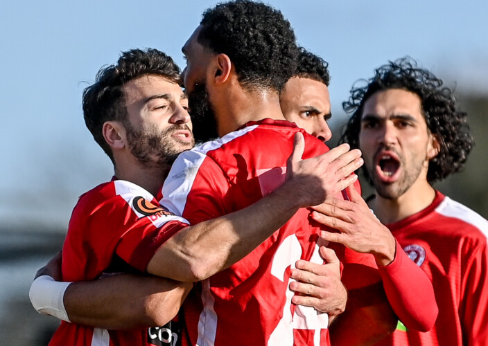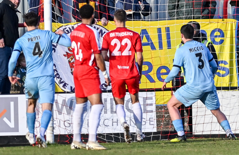 One minute later, the two Welling strikers again combined to good effect. Moore’s tenacity allowed him to play it in to Kashket, and from a tight angle, he clipped it over Horlock and into the inside of the net.