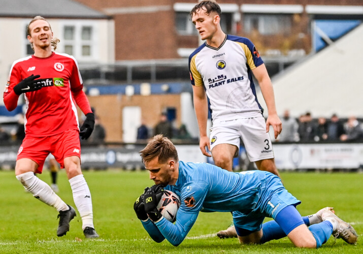 That appeared to drain the confidence out of the Welling side and Anderson headed wide before Jinadu made a brilliant double save just before the half-time break to keep out Brendan Willson’s header and Kealy’s follow-up.