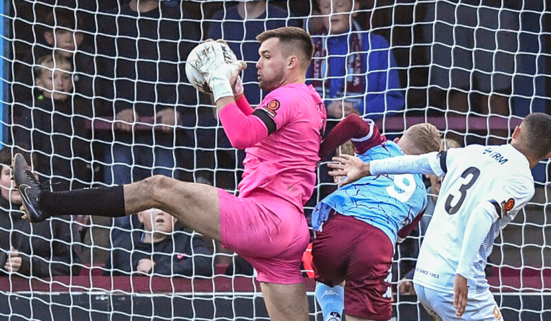 Main Pic: Keeper Ben Winterbottom and Jack Burchell collide conceding a goal