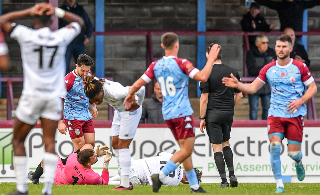 Main Pic: Keeper Ben Winterbottom and Jack Burchell collide conceding a goal