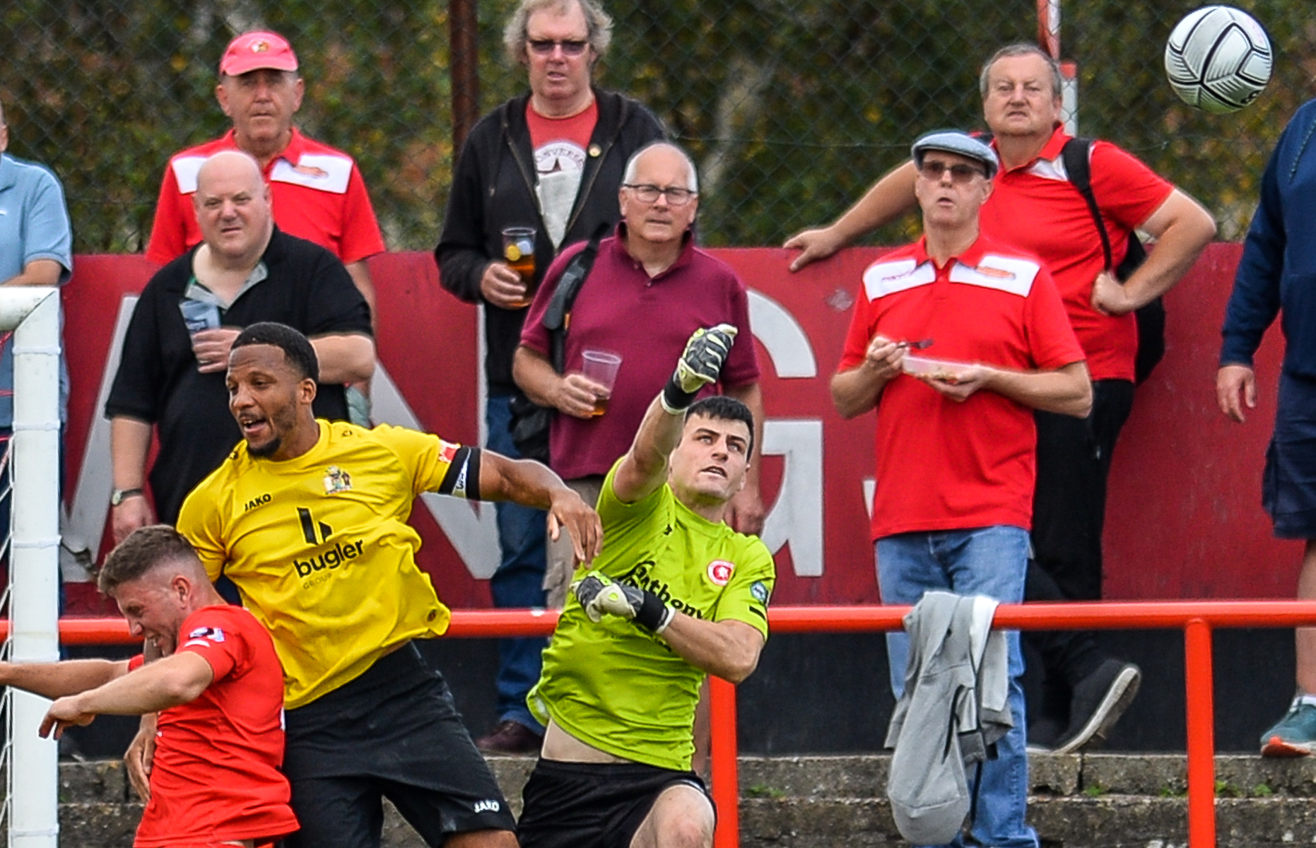 Tom Smith, back after injury, was out quickly to thwart James Ewington before Welling created a rare opening as Chi Ezennolim’s long pass picked out Kristian Campbell, who got past his man with the aid of a great first touch. However, when he looked up to cross there was nobody in the penalty area so he had to pull it back to Dipo Akinyemi, who hacked his shot high over the bar.