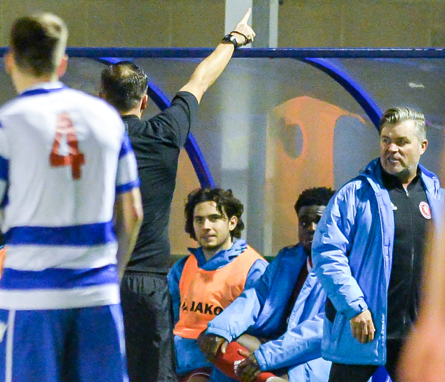 In injury time the tension of not finishing the game off caused a comment to come from the Welling bench that the referee didn’t like and he sent the Wings manager to the changing rooms.