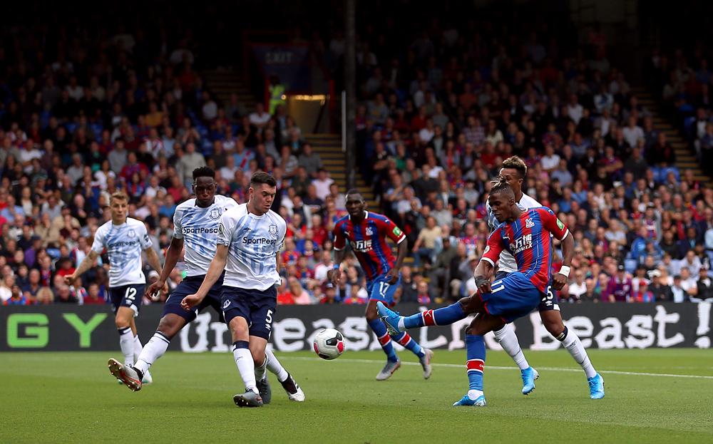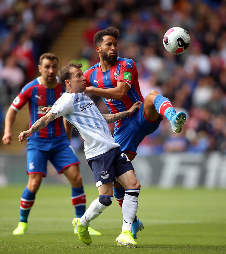 Palace rode their luck at times, Gylfi Sigurdsson somehow side-footed wide when a loose ball fell his way 12 yards from goal. Patrick van Aanholt cleared another effort from the Iceland international off the line and Vicente Guaita made a fantastic save from Seamus Coleman.