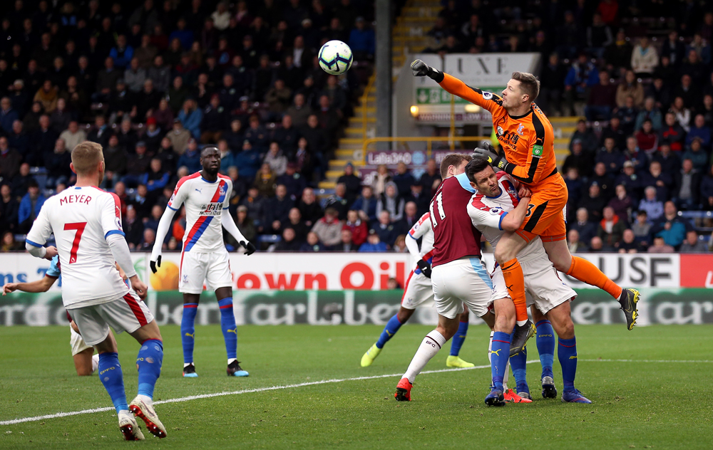 But Palace under Hodgson play very much on the counter attack, at least until they end up in the ascendency. They came under pressure midway through the half when Chris Wood advanced into the area before firing at goal. Wayne Hennessey – brought in to counter Burnley’s aerial threat – spread himself well to initially narrow the angle and subsequently block the shot.