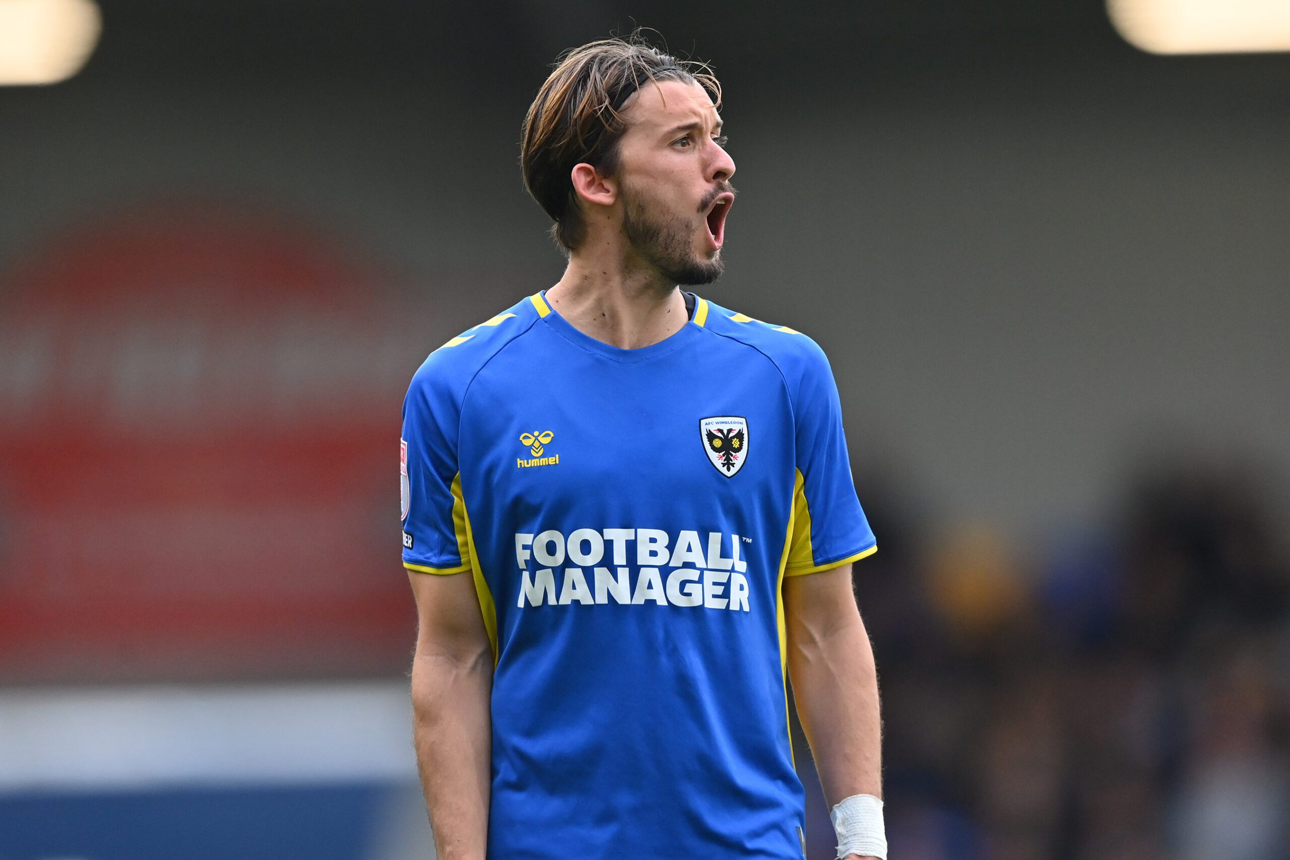 Tranmere’s Dynel Simeu was shown a straight red card for an altercation with Wimbledon midfielder Harry Pell.