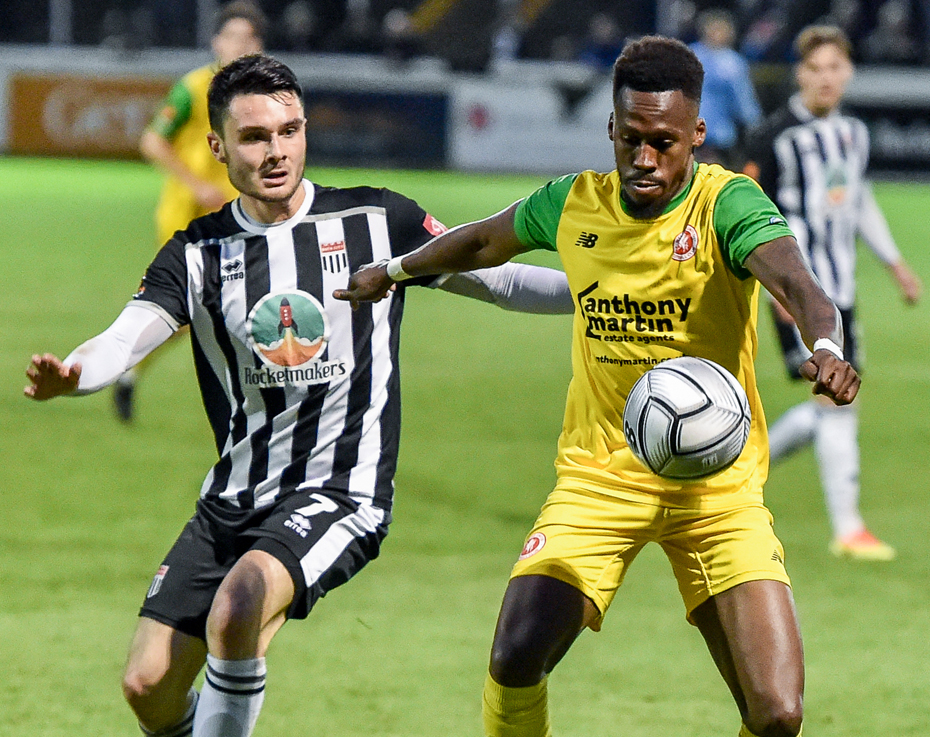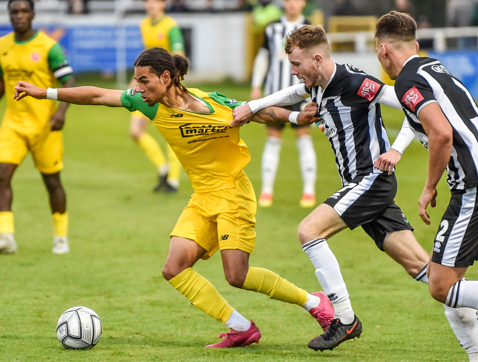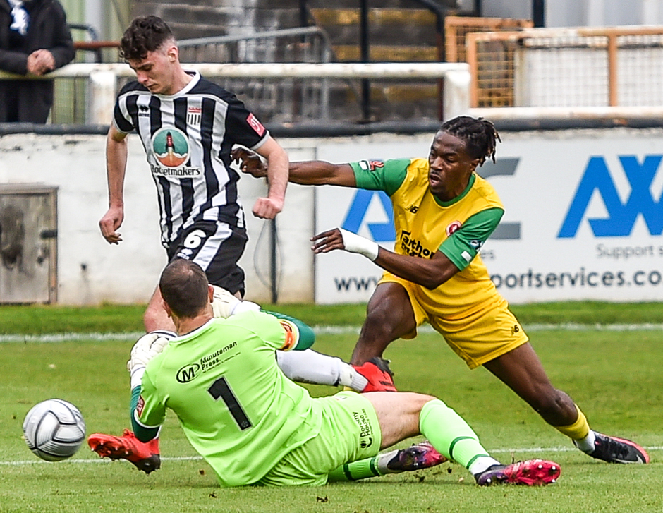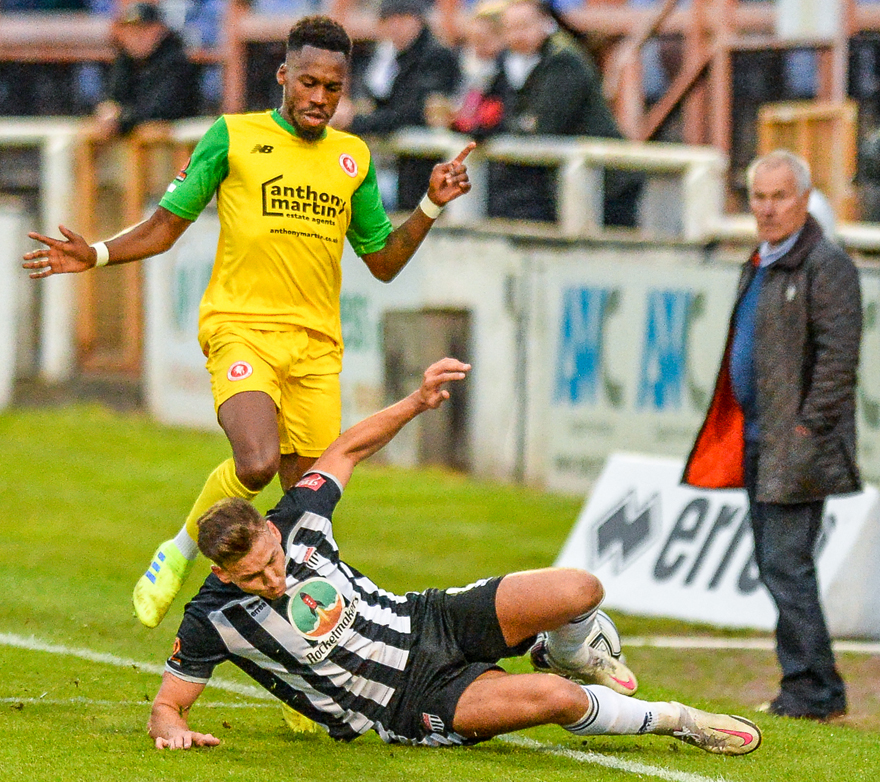 Peter Taylor made a double change to his team and there was a noticeable improvement to their tempo. Kristian Campbell delivered an enticing free-kick and Daniel Carr got ahead of his man but used his hand to force it home.