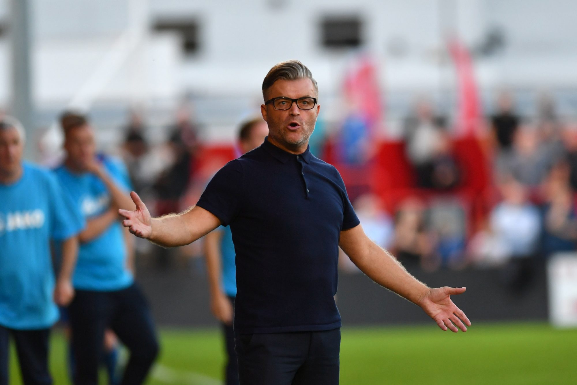 Harvey Bradbury set up the last chance of the half but Wilks was down quickly to save Toby Edser’s shot.