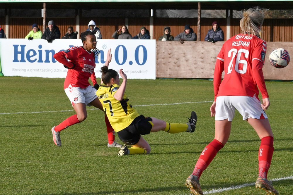 In-form Charlton came flying out of the blocks when Katie Robinson got hold of the ball, finding Roche who still had plenty to do 20 yards out, but curled it beautifully around a helpless Georgia Ferguson.