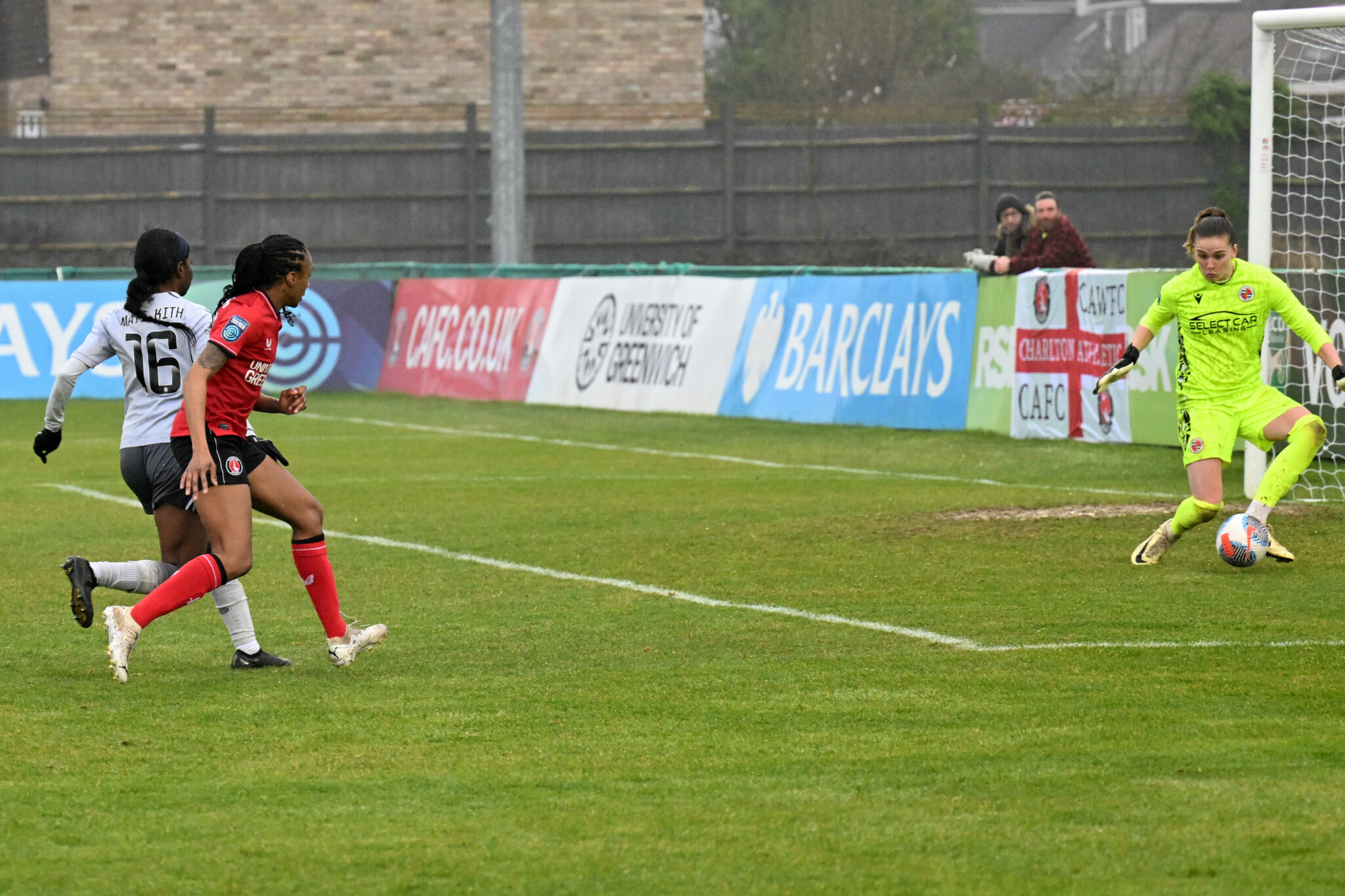 The Addicks were awarded a penalty in the 26th minute when Jessie Stapleton brought down Kayleigh Barton inside the area.