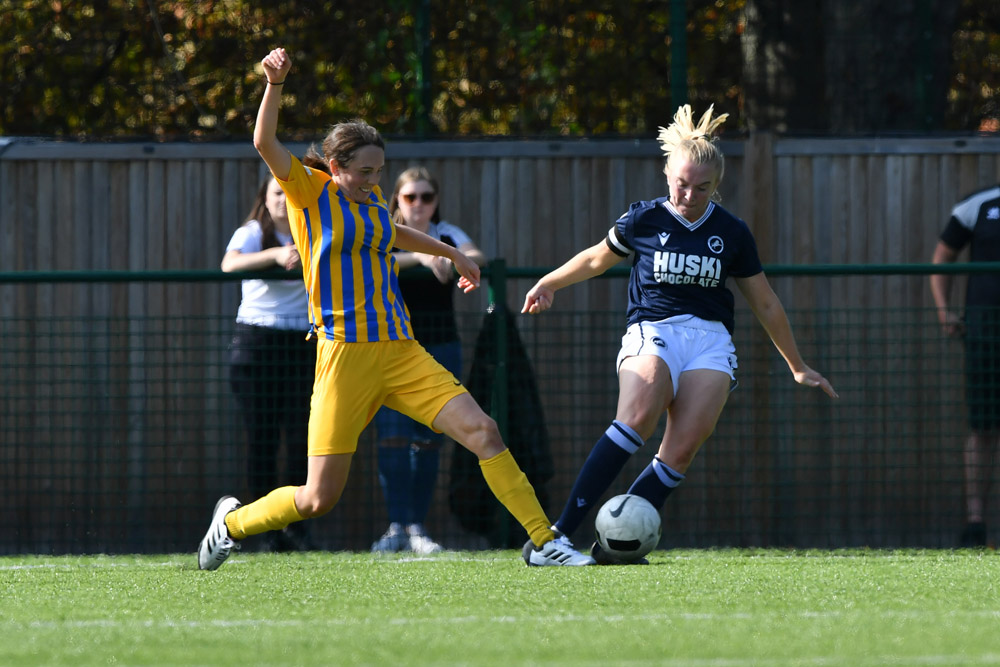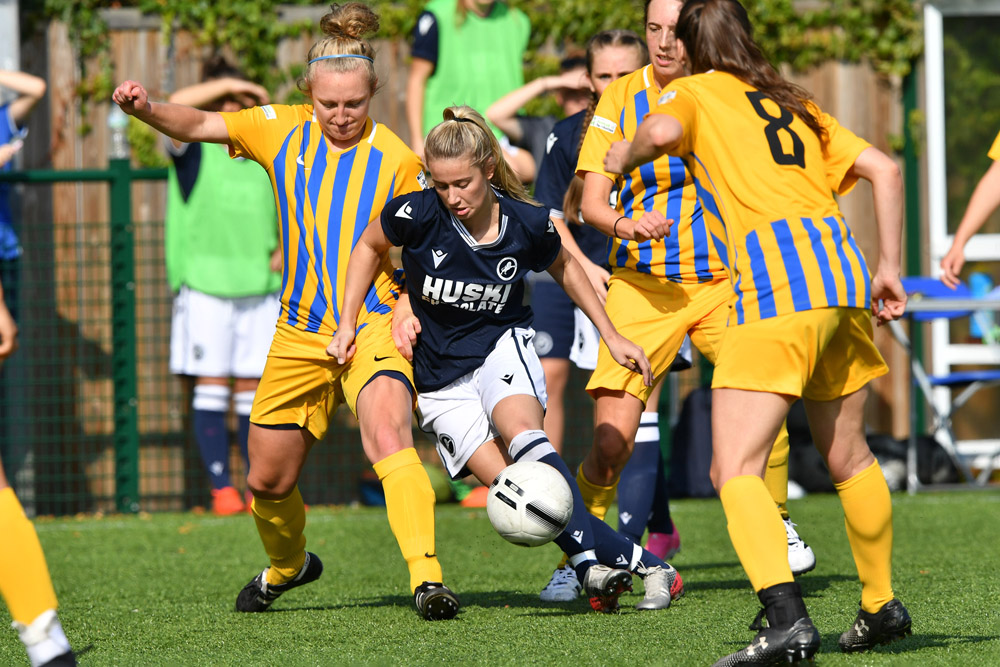 Millwall keeper Millie Carter pulled off a number of saves to keep the scoreline down. Lois Smith also produced a goal-line clearance.