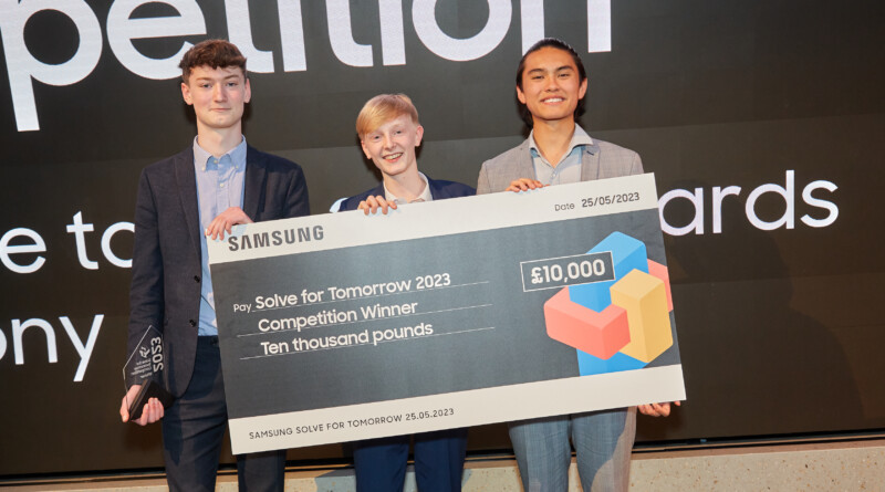 Joseph Birch, 16, Ben Sindall, 16, and Liam Bridgman, 17, from Bromley, took first place in Samsung’s Solve for Tomorrow Competition in the 16-18 category for creating a device that uses waste cooking oil from restaurants to remove microplastics from polluted water.