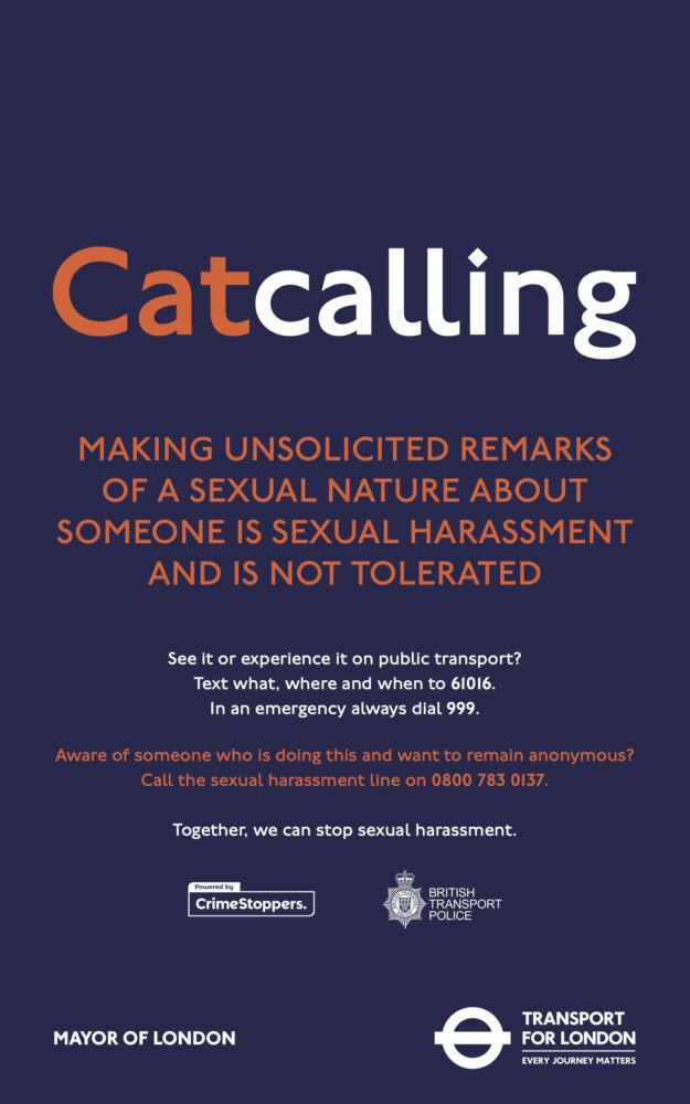 A series of posters and paid adverts will highlight common forms of harassment such as catcalling, staring and unwanted touching, and will aim to challenge the normalisation of such behaviours.