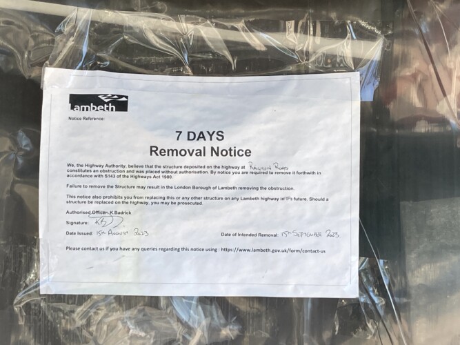 But she now faces being made homeless again after Lambeth council ordered her to disassemble her pop-up home by September 15.