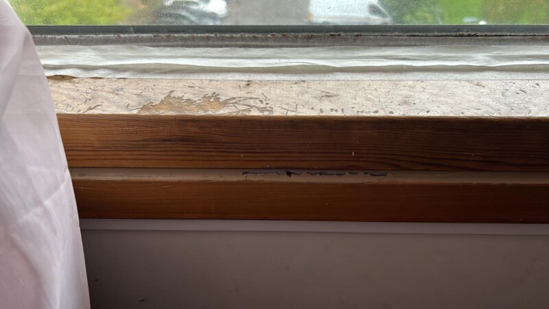 “He left a mess I had to clear up and just covered the gaps in the windows with masking tape.