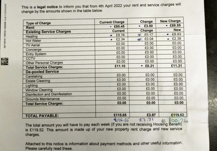 Many of the tenants receive the basic pension of £156.20 per week, and are struggling to cover the huge rise leading to some falling behind in their payments and receiving eviction notices. The discrepancies in the invoices from the council has added to the residents’ concern over the situation.