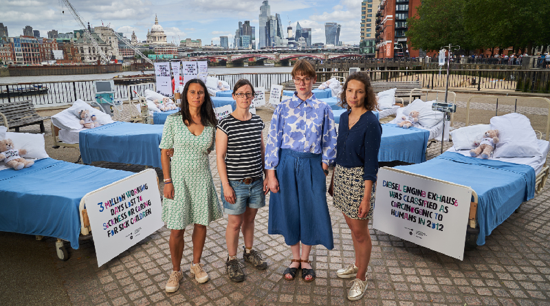 The campaign stunt is being delivered by a group of campaigners, fronted by the group Mums for Lungs, with support from the Clean Cities Campaign, who are calling for London to phase out diesel vehicles by 2030.